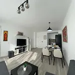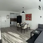 The guests have access to a full kitchen fitted with a microwave, an electric kettle, and a refrigerator. You can head to Romance Pizza, which offers contemporary cuisine just a short drive from the property. The nearest bus stop to the 70 m^2 apartment is Sct, which is just 5 minutes' walk away. A terrace is a great place to dine and enjoy a drink.